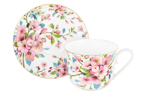 Чайн. пара 2 пр. 300 мл 12,5*9,5*7 см "Яблоневый цвет на белом" на ножке, NEW BONE CHINA