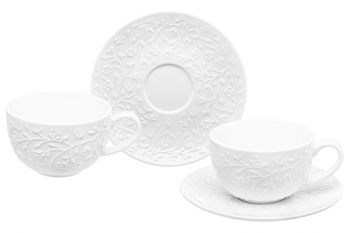 Чайная пара из серии «Веточки-цветочки» от Elan Gallery предназначена для эстетичной сервировки вашего стола. Размер ёмкости – 13х10х6,5 см, объём – 300 мл. Размер блюдца – 16х16х1,8 см. Выполнены из высококачественного белого фарфора. Он не впитывает цвет напитков и легко отмывается, благодаря чему надолго сохраняет свою белизну. Поверхность изделий украшают рельефные узоры в виде лиственных веточек с аккуратными цветочными бутончиками. Кофейная кружка поможет вам провести множество приятных завтраков с капучино и латте, а также уютные чайные вечера с конфетами, вафлями, другими десертами и сладостями. Подойдёт ценителям чая и кофе, которые любят пить из красивой и необычной посуды. Согрейтесь зимой любимым горячим напитком: какао с маршмэллоу, ягодным чаем или горячим шоколадом. Летом освежитесь домашним лимонадом или морсом. Используйте сервировочное блюдце как подставку для чашки, чтобы порадовать гостей изящной сервировкой. Положите на десертную тарелку пирожное, кусочек торта или домашнего пирога. Подойдёт не только для десертов, но и для закусок: сырной нарезки, сырокопчёной колбасы или свежих овощей и зелени. Декоративные изделия позволят организовать запоминающееся чаепитие. Не рекомендуется применять абразивные моющие средства. Подходит для использования в микроволновой печи и посудомоечной машине. Поставляется в дизайнерской картонной коробке – благодаря ей вам не потребуется дополнительная подарочная упаковка. Фарфоровая сервировочная посуда будет оригинальным подарком для хозяйки, ценящей не только практичность, но и привлекательность. Серия «Веточки-цветочки» от бренда Элан Галерея станет украшением любого кухонного инвентаря и позволит собрать красивый сервиз в едином стиле!