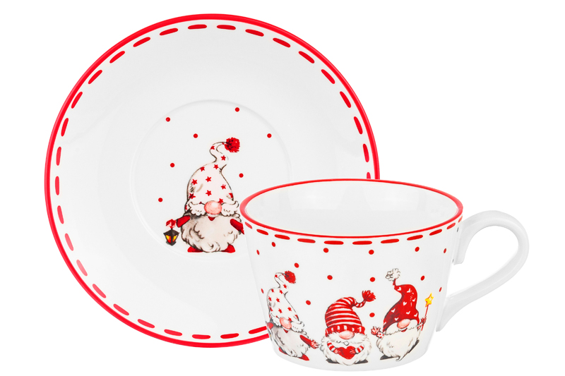 Чайная пара из серии «Весёлые гномики» от Elan Gallery предназначена для эстетичной сервировки вашего стола. Размер ёмкости – 13,5х10х7 см, объём – 360 мл. Размер блюдца – 16,5х16,5х1,5 см. Выполнена из высококачественного фарфора. Он не впитывает цвет напитков и легко отмывается, благодаря чему надолго сохраняет свою белизну. Поверхность изделий украшает яркий рисунок в виде забавных гномиков. Мы создали коллекцию новогодних и рождественских товаров для сервировки и декора, которые наполнят пространство атмосферой уюта. Изделия помогут оформить интерьер праздничными композициями и добавят нотку зимнего волшебства. Кофейная кружка поможет вам провести множество приятных завтраков с капучино и латте, а также уютные чайные вечера с конфетами, вафлями и другими десертами и сладостями. Подойдёт ценителям чая и кофе, которые любят пить из красивой и необычной посуды. Согрейтесь зимой любимым напитком: какао с маршмэллоу, ягодным чаем, горячим шоколадом или глинтвейном. Летом освежитесь домашним лимонадом или морсом. Используйте сервировочное блюдце как подставку для чашки, порадовав гостей изящной сервировкой. Положите на десертную тарелку пирожное, кусочек торта или домашнего пирога. Подойдёт не только для десертов, но и для закусок: сырной нарезки, сырокопчёной колбасы или свежих овощей и зелени. Фарфоровая посуда с изображением маленьких новогодних помощников привнесёт в любое помещение дух волшебства и праздника! Это оригинальный элемент вашего декора. Не рекомендуется применять абразивные моющие средства. Подходят для использования в посудомоечной машине и микроволновой печи. Поставляются в дизайнерской картонной коробке – благодаря ей вам не потребуется дополнительная подарочная упаковка. В коллекции бренда Elan Gallery представлены посуда, сувениры и украшения с новогодней символикой. Каждый подберёт оригинальный сюрприз для семьи, друзей и коллег на Новый год и Рождество. Такой подарок наполнит дом семейным теплом и духом праздника! /