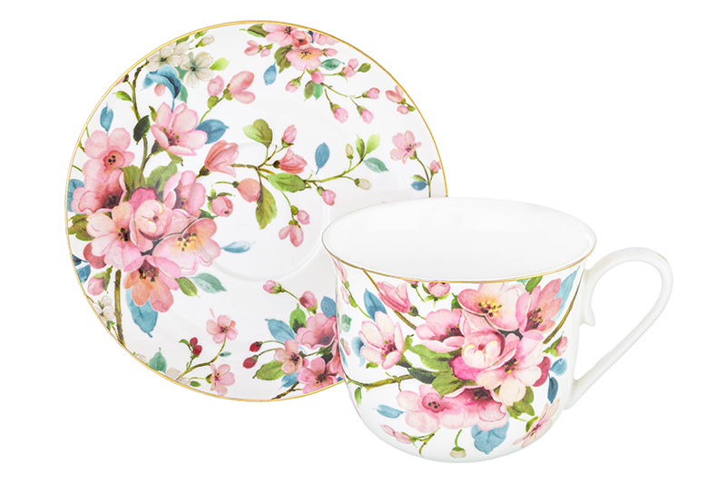 Чайн. пара 2 пр. 450 мл 14*11*8,5 см "Яблоневый цвет на белом" NEW BONE CHINA