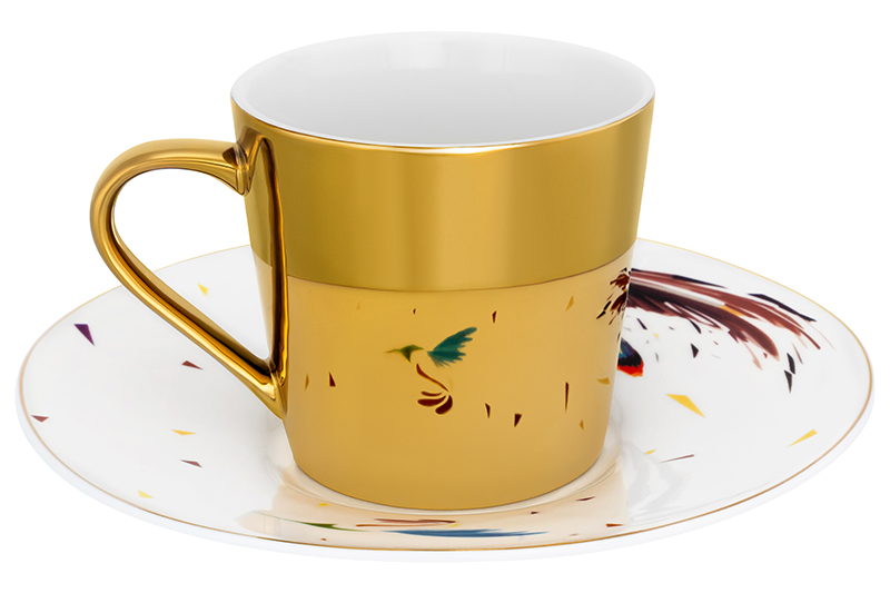 Чайная пара «Колибри» от Elan Gallery предназначена для эстетичной сервировки вашего стола. Состоит из необычной анаморфной кружки и блюдца с абстрактным узором. Благодаря зеркальной поверхности кружки узор в отражении превращается в узнаваемое и выразительное изображение. Размер ёмкости – 11х8,5х8 см, объём – 250 мл. Размер блюдца – 17,5х17,5х2,5 см. Выполнены из высококачественного белого фарфора. Кофейная кружка поможет вам провести множество приятных завтраков с капучино и латте, а также уютные чайные вечера с конфетами, вафлями и другими десертами и сладостями. Подойдёт ценителям чая и кофе, которые любят пить из красивой и необычной посуды. Согрейтесь зимой любимым напитком: какао с маршмэллоу, ягодным чаем, горячим шоколадом. Летом освежитесь домашним лимонадом и морсом. Используйте сервировочное блюдце как подставку для чашки, порадовав гостей изящной сервировкой. Положите на десертную тарелку пирожные, кусочки торта или домашнего пирога. Подойдёт не только для десертов, но и для закусок: сырной нарезки, сырокопчёной колбасы или свежих овощей и зелени. Не рекомендуется применять абразивные моющие средства. Не использовать в микроволновой печи и посудомоечной машине. Поставляются в дизайнерской картонной коробке – благодаря ей вам не потребуется дополнительная подарочная упаковка. Фарфоровая сервировочная посуда будет оригинальным подарком для хозяйки, ценящей не только практичность, но и привлекательность. Сочетание формы и оптической иллюзии сделает комплект от бренда Элан Галерея эффектным акцентом любой сервировки. Удивите гостей и привнесите нотку волшебства в каждое чаепитие!