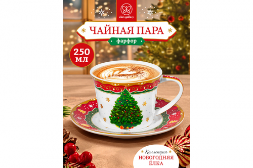 Чайная пара 2 пр. 450 мл 14*11*8,5 см "Новогодняя ёлка" красный узор NEW BONE CHINA
