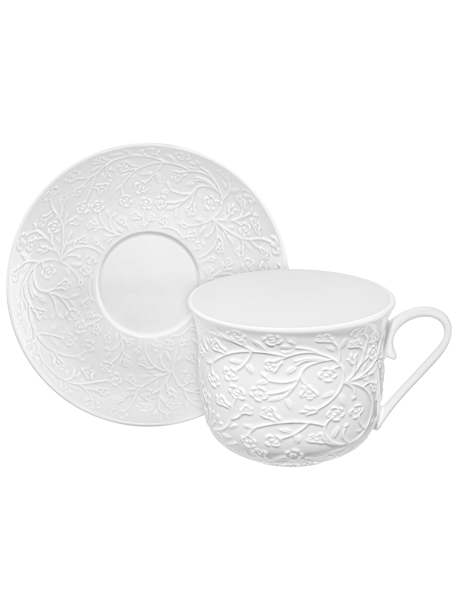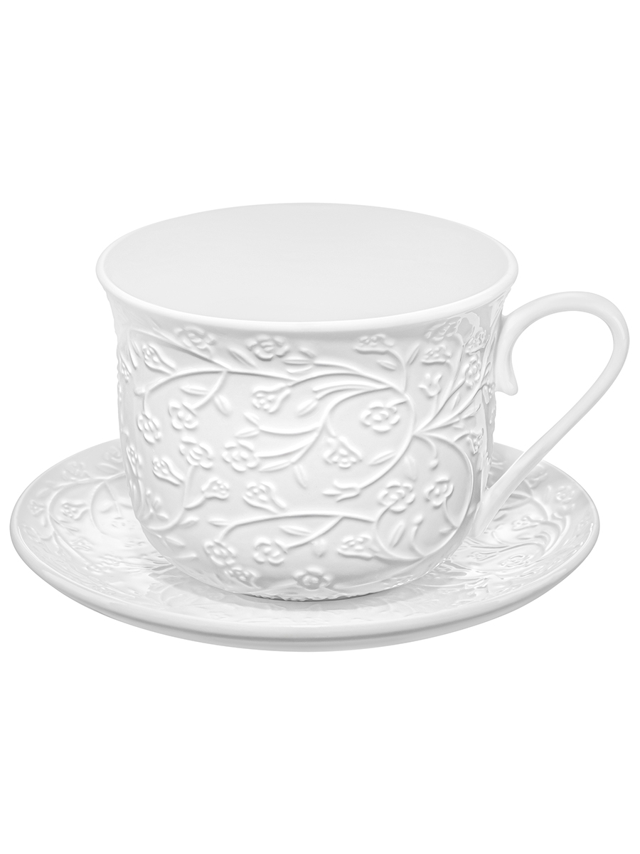 Чайная пара из серии «Веточки-цветочки» от Elan Gallery предназначена для эстетичной сервировки вашего стола. Размер ёмкости – 14х11х8,5 см, объём – 450 мл. Размер блюдца – 16х16х2 см. Выполнена из высококачественного белого фарфора. Он не впитывает цвет напитков и легко отмывается, благодаря чему надолго сохраняет свою белизну. Поверхность изделия украшают рельефные узоры в виде лиственных веточек с аккуратными цветочными бутончиками. Кофейная кружка поможет вам провести множество приятных завтраков с капучино и латте, а также уютные чайные вечера с конфетами, вафлями, другими десертами и сладостями. Подойдёт ценителям чая и кофе, которые любят пить из красивой и необычной посуды. Согрейтесь зимой любимым напитком: какао с маршмэллоу, ягодным чаем, горячим шоколадом. Летом освежитесь лимонадом или морсом. Используйте сервировочное блюдце как подставку для чашки, порадовав гостей изящной сервировкой. Положите на десертную тарелку пирожные, кусочки торта или домашнего пирога. Подойдёт не только для десертов, но и для закусок: сырной нарезки, сырокопчёной колбасы или свежих овощей и зелени. Не рекомендуется применять абразивные моющие средства. Подходит для использования в посудомоечной машине и микроволновой печи. Поставляется в дизайнерской картонной коробке – благодаря ей вам не потребуется дополнительная подарочная упаковка. Фарфоровая сервировочная посуда будет оригинальным подарком для хозяйки, ценящей не только практичность, но и привлекательность. Серия «Веточки-цветочки» от бренда Элан Галерея станет украшением любого кухонного инвентаря и позволит собрать красивый сервиз в едином стиле!