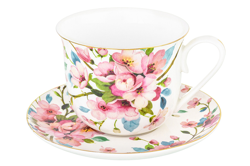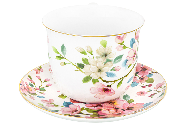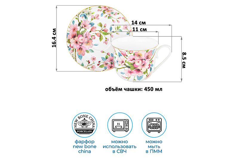 Чайная пара 2 пр. 450 мл 14*11*8,5 см "Яблоневый цвет на белом" NEW BONE CHINA