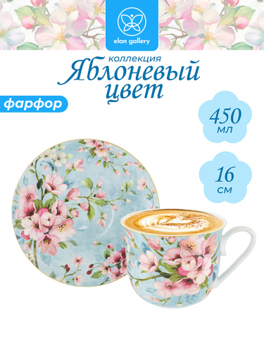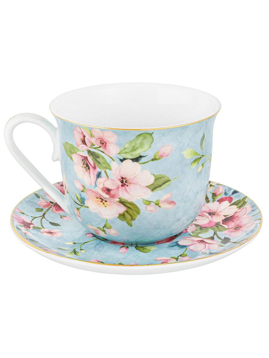 Чайная пара 2 пр. 450 мл 14*11*8,5 см "Яблоневый цвет на голубом" NEW BONE CHINA