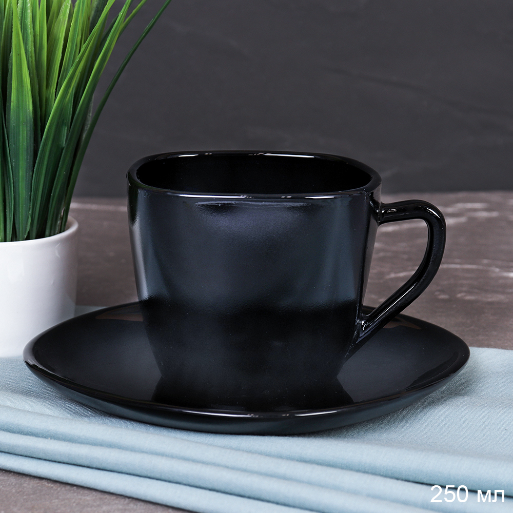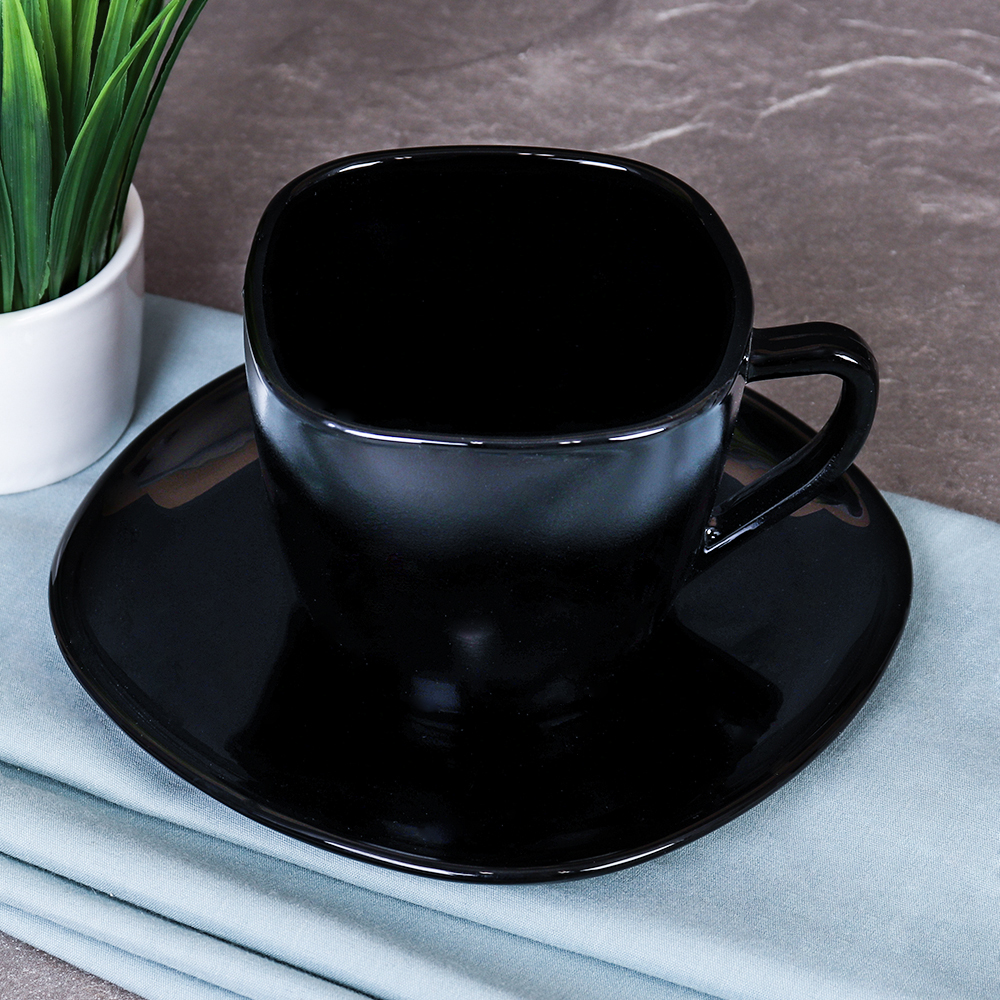 Чайная пара 2 предмета ПАРА 250 мл ЧЕРНАЯ квадратная BFB220C-12 (BLACK) (уп 8)