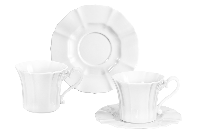 Набор 2 чайных пар из серии «Грация» от Elan Gallery предназначен для эстетичной сервировки вашего стола. Размер каждой ёмкости – 11,5х9х7,5 см, объём – 200 мл. Размер дна – 6х6 см. Размер каждого блюдца – 14,5х14,5х1,5 см. Выполнены из высококачественного белого фарфора. Он не впитывает цвет напитков и легко отмывается, благодаря чему надолго сохраняет свою белизну. Поверхность изделий украшена рельефом, навеянным формой распустившегося бутона. Нежный белый цвет и утончённый силуэт изделий придадут вашей сервировке особую лёгкость. Кофейные кружки с фигурными ручками помогут вам провести множество приятных завтраков с капучино и латте, а также уютные чайные вечера с конфетами, вафлями, другими десертами и сладостями. Подойдут ценителям чая и кофе, которые любят пить из красивой и необычной посуды. Согрейтесь зимой любимым напитком: какао с маршмэллоу, ягодным чаем, горячим шоколадом или глинтвейном. Летом освежитесь домашним лимонадом или морсом. Используйте сервировочные блюдца как подставки для чашек, порадовав гостей изящной сервировкой. Положите на десертные тарелки пирожные, кусочки торта или домашнего пирога. Не рекомендуется применять абразивные моющие средства. Подходят для использования в посудомоечной машине и микроволновой печи. Поставляются в дизайнерской картонной коробке – благодаря ей вам не потребуется дополнительная подарочная упаковка. Фарфоровая сервировочная посуда будет оригинальным подарком для хозяйки, ценящей не только практичность, но и привлекательность. Серия «Грация» от бренда Элан Галерея создаёт атмосферу деликатной роскоши – для неспешных чаепитий, становящихся особенными моментами.
