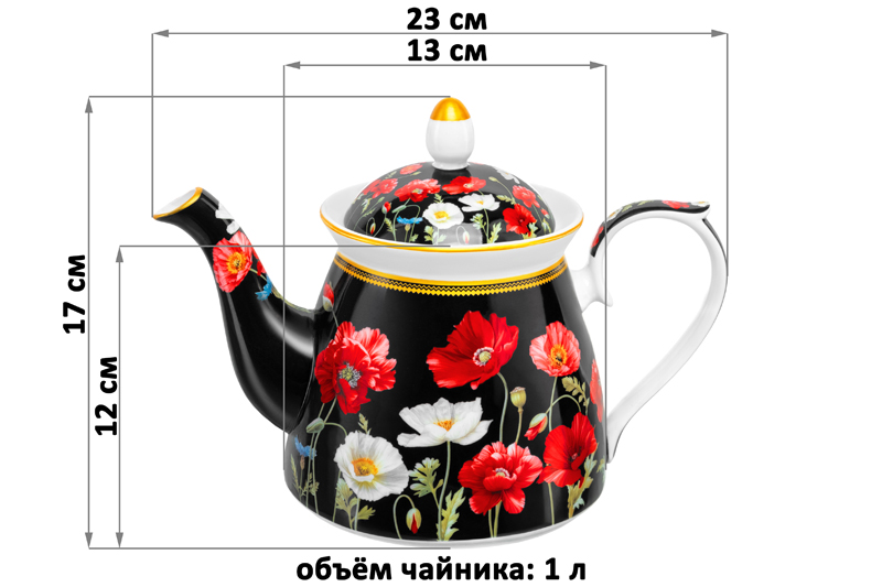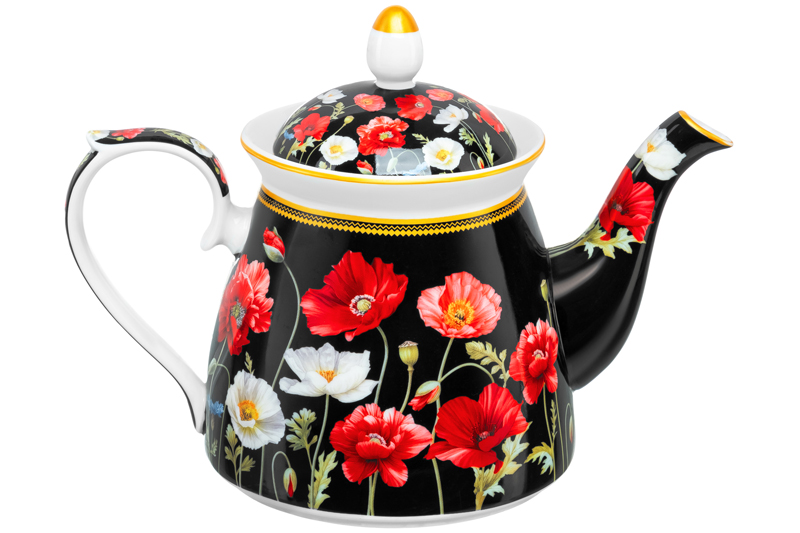 Чайник 1 л 23*13*17 см "Маки на черном" NEW BONE CHINA