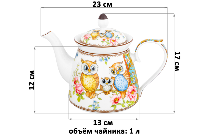 Чайник 1 л 23*13*17 см "Совушки" NEW BONE CHINA