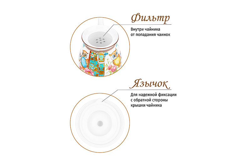 Чайник из серии «Совушки» от Elan Gallery предназначен для эстетичной сервировки вашего стола. Размер ёмкости – 23х13х17 см, объём – 1 литр. Выполнен из фарфора нового поколения new bone china, сочетающего в себе изящность и высокую прочность. За счёт гладкости изделия легко отмываются, поэтому сохраняют привлекательный внешний вид и практичны в использовании. Плотная структура материала позволяет посуде дольше сохранять температуру блюд и напитков. От других видов костяного фарфора new bone china отличается большей экологичностью в производстве. Поверхность изделия украшает забавный рисунок: две совы и маленький совёнок с большими глазами сидят на ветке дерева. Нежные бутоны розовых и голубых цветов, а также растительный узор на фоне придают композиции сказочности и тепла. Декоративный чайничек подходит для ежедневного заваривания и станет незаменимой составляющей любого чаепития. Фильтр в виде маленьких отверстий в стенке позволит наслаждаться ароматной заваркой без попадания мелких чаинок. Крышка прочно держится на заварнике благодаря язычку. Вместительный заварочник позволит наполнить множество кружек за раз, практично дополняя большое застолье! Подайте его к столу, чтобы насладиться чаем с конфетами, шоколадом и другими сладостями. Он привнесёт эстетику в организацию чайной церемонии. Лаконичный дизайн впишет чайник в интерьер любой кухни, столовой или гостиной. Не рекомендуется применять абразивные моющие средства. Подходит для использования в посудомоечной машине. Поставляется в дизайнерской картонной коробке – благодаря ей вам не потребуется дополнительная подарочная упаковка. Фарфоровая сервировочная посуда будет оригинальным подарком для хозяйки, ценящей не только практичность, но и привлекательность. Серия «Совушки» от бренда Элан Галерея станет украшением любого кухонного инвентаря и позволит собрать красивый сервиз в едином стиле!