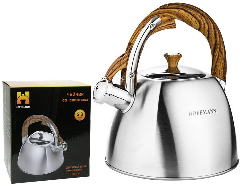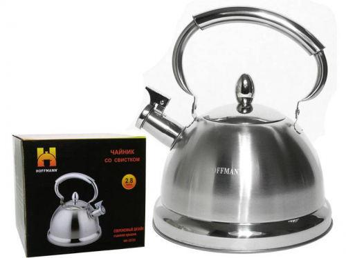 Чайник для плиты HOFFMANN объемом 2,3 л, выполнен из нержавеющей стали 0,6 мм. Оснащен термоаккумулирующим капсулированным дном с алюминиевой пластинойПодходит для индукционной плитыДля всех видов плитЗаключаем договора по 44 ФЗ, 223 ФЗ