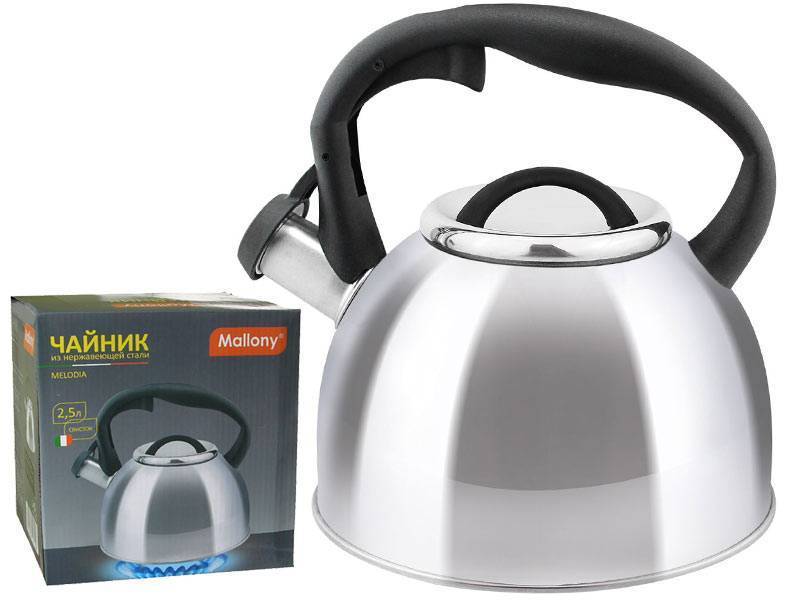 Чайник из нерж стали со свистком серия MelodiaОбъем 2,5 литра, Толщина стали - 0,3 мм. Зеркальная полировка корпуса.Материалы: нерж. сталь; нейлонОднослойное дновнутри - матовыйручка - нейлон.Не рекомендуется мыть в посудомоечной машине.Упаковка - цветная коробка.Носик чайника оснащен насадкой-свистком, что позволит контролировать процесс подогрева или кипячения воды. Чайник снабжен стальной крышкой и эргономичной нейлоновой ручкойПодходит для всех видов плит.Заключаем договора по 44 ФЗ, 223 ФЗ