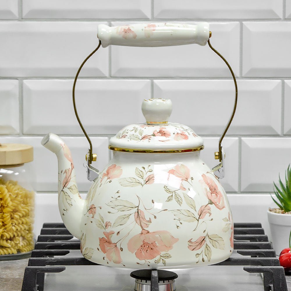 Чайник 2,6л эмаль "Flowers", индукция, комб. ручка "под золото", Z-4501