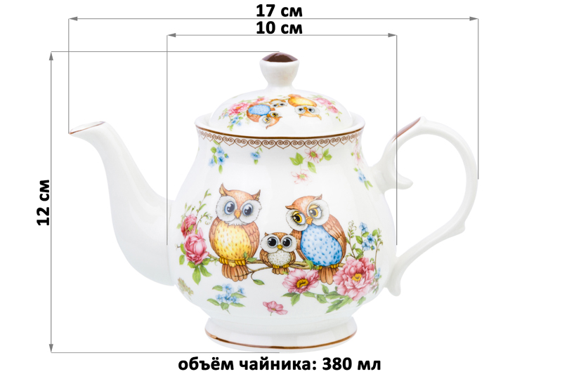 Чайник 380 мл 17*10*12 см "Совушки" NEW BONE CHINA