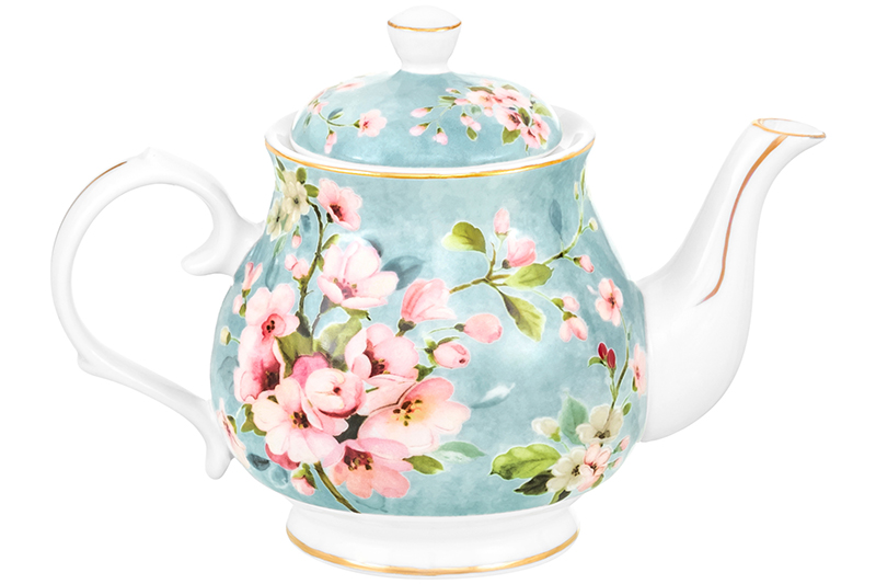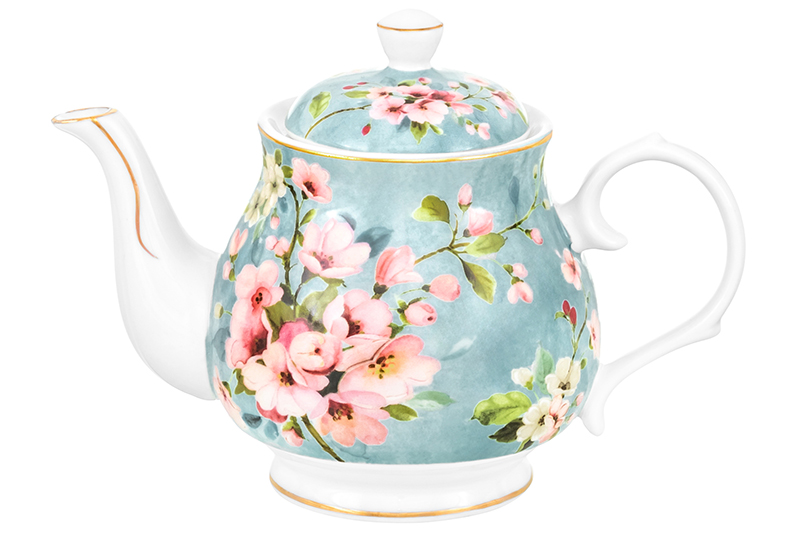 Чайник 380 мл 17*10*12 см "Яблоневый цвет на голубом" NEW BONE CHINA