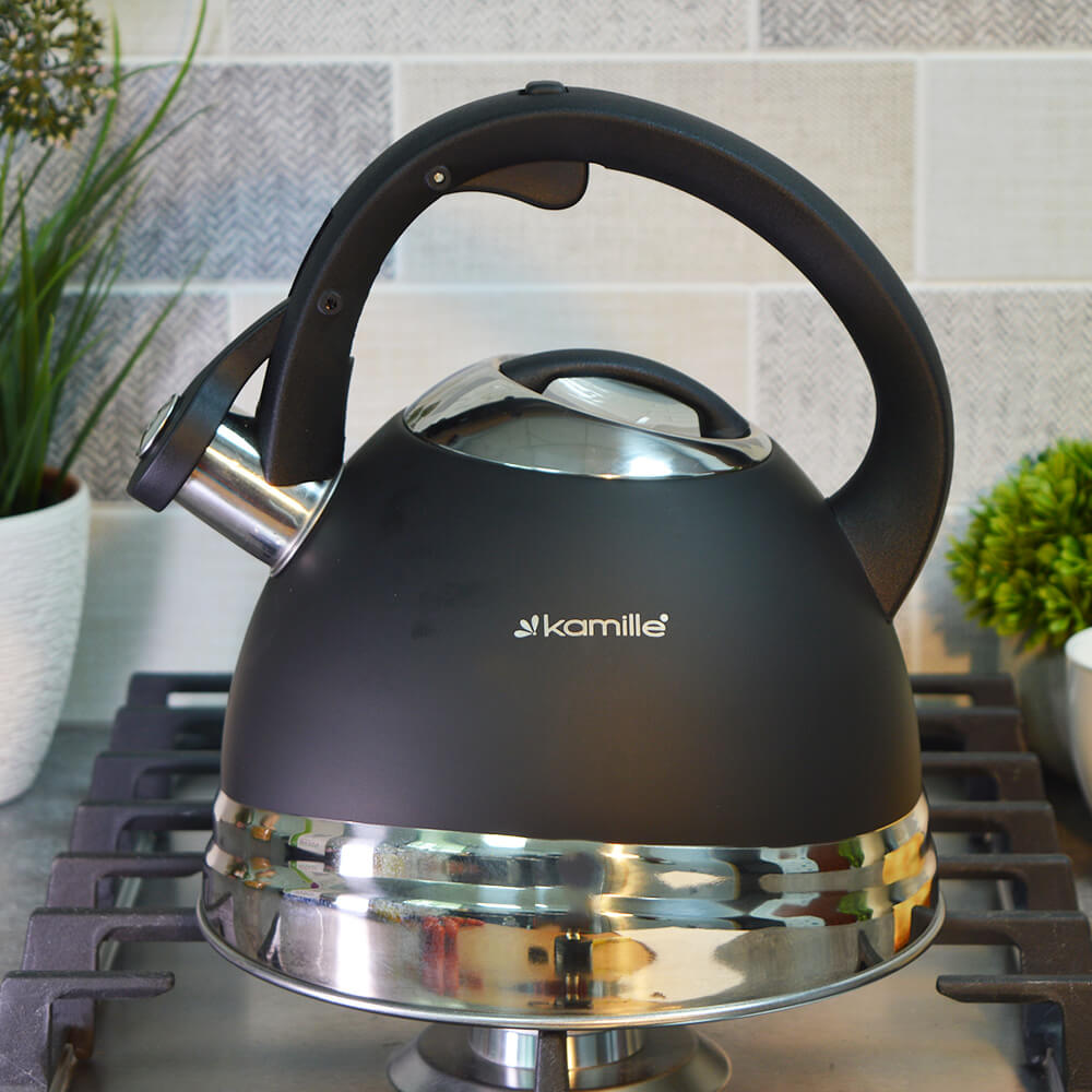 Чайник 3л нерж со свистком, с ручкой "soft touch", черный