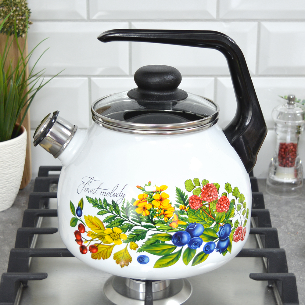 Чайник 3л со свистком "Лесная мелодия"Чайник изготовлен из эмалированной стали, которая не впитывает запахи, не окисляется.Носик чайника оснащен насадкой-свистком, который позволяет контролировать процесс кипячения или подогрева воды.Подходит для всех типов плит, в том числе индукционных.Объем - 3 л.Заключаем договора по 44 ФЗ, 223 ФЗ