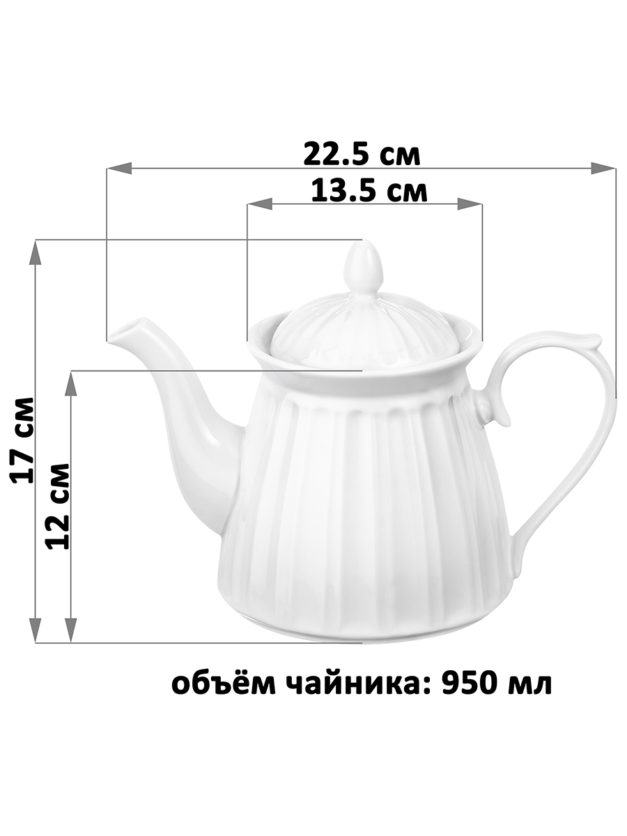 Чайник из серии «Ампир» от Elan Gallery предназначен для эстетичной сервировки вашего стола. Размер изделия – 22,5х13,5х17 см, объём – 950 мл. Выполнен из высококачественного белого фарфора. Он не впитывает цвет напитков и легко отмывается, благодаря чему надолго сохраняет свою белизну. Поверхность изделия украшает элегантный ребристый рельеф. Декоративный чайничек подходит для ежедневного заваривания и станет незаменимой составляющей любого чаепития. Фильтр в виде маленьких отверстий в стенке позволит наслаждаться ароматной заваркой без попадания мелких чаинок. Крышка прочно держится на корпусе благодаря язычку. Вместительный заварочник позволит наполнить множество кружек за раз, практично дополняя любое застолье! Подайте его к столу, чтобы насладиться чаем с конфетами, шоколадом и другими сладостями. Он привнесёт эстетику в организацию чайной церемонии. Не рекомендуется применять абразивные моющие средства. Не использовать в посудомоечной машине и микроволновой печи. Поставляется в дизайнерской картонной коробке – благодаря ей вам не потребуется дополнительная подарочная упаковка. Фарфоровая сервировочная посуда будет оригинальным подарком для хозяйки, ценящей не только практичность, но и привлекательность. Серия «Ампир» от бренда Элан Галерея станет украшением любого кухонного инвентаря и позволит собрать красивый сервиз в едином стиле!
