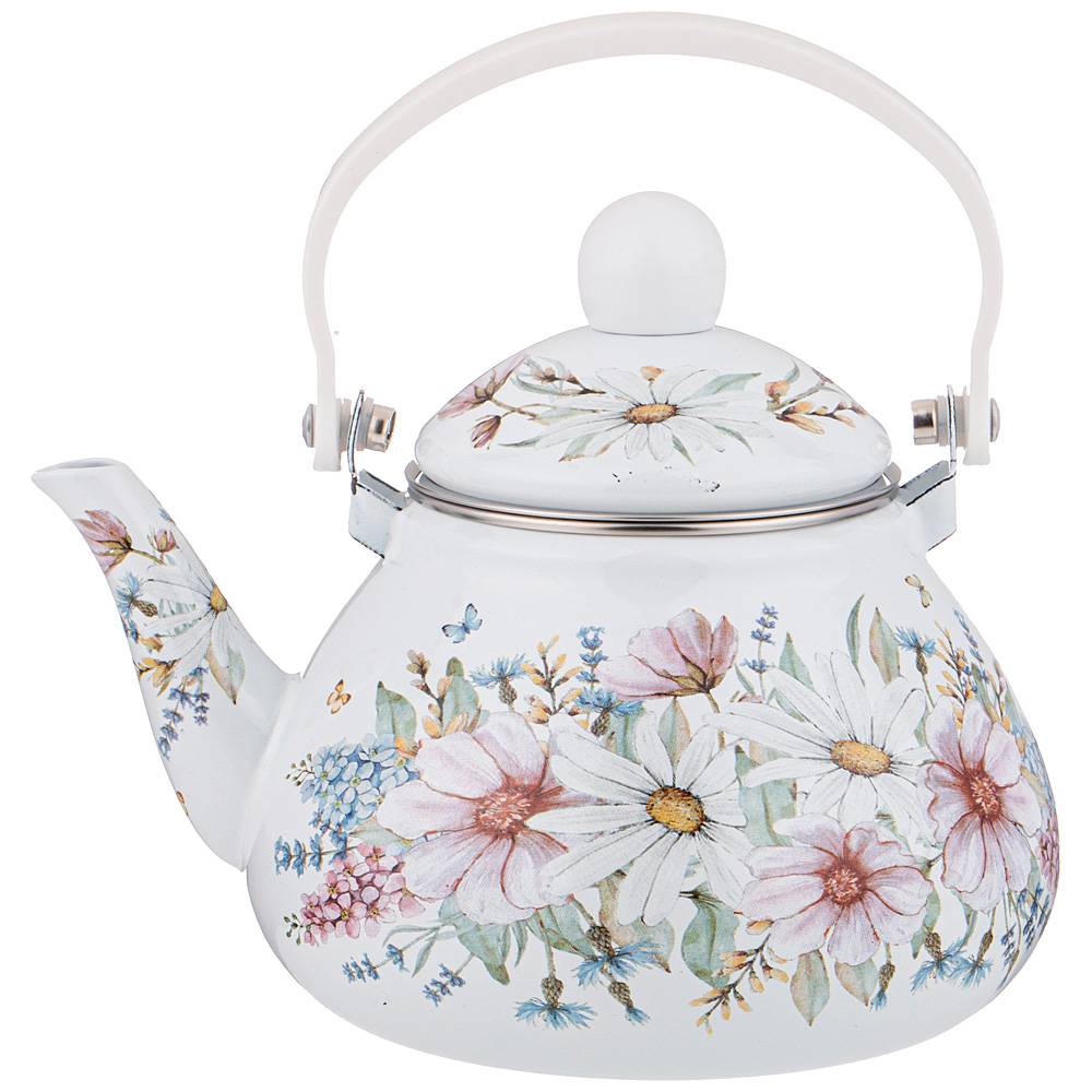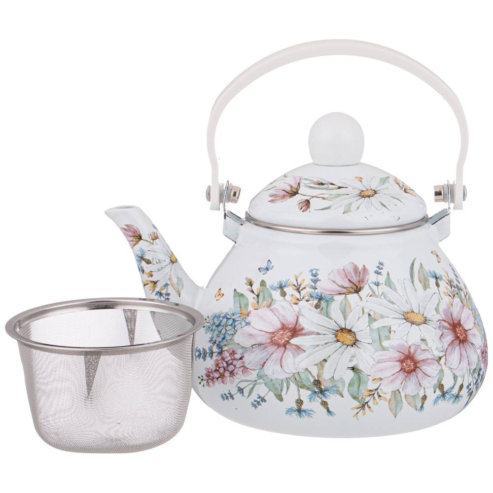 ЧАЙНИК AGNESS ЭМАЛИРОВАННЫЙ СО СЪЕМНЫМ ФИЛЬТРОМ ИЗ НЖС, СЕРИЯ "ДВОРЦОВЫЙ ПАРК"1,3 Л