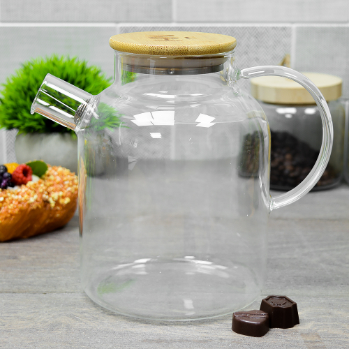 Чайник заварочный 1,6л "MercuryHaus" стеклянный с бамбуковой крышкой, MC-6497