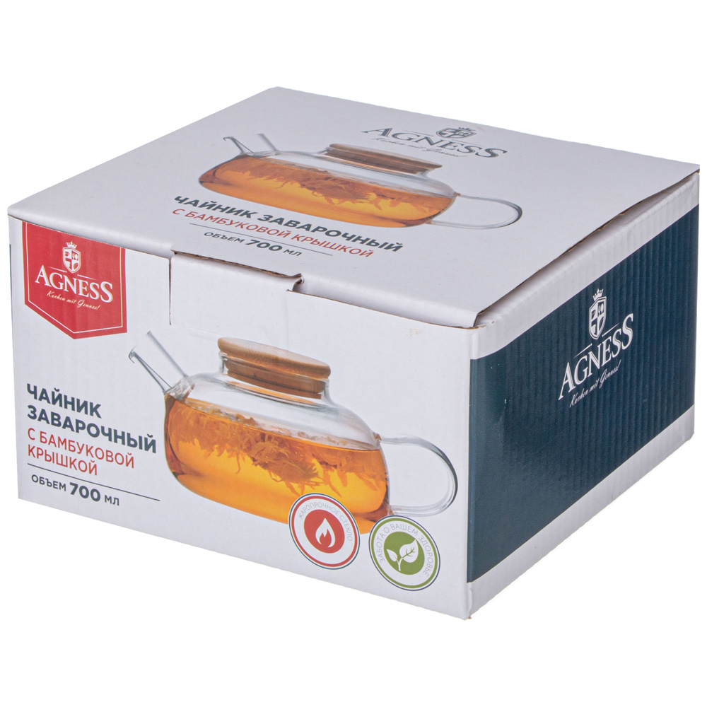 ЧАЙНИК ЗАВАРОЧНЫЙ 700 МЛ. С БАМБУКОВОЙ КРЫШКОЙ (КОР=24ШТ.)