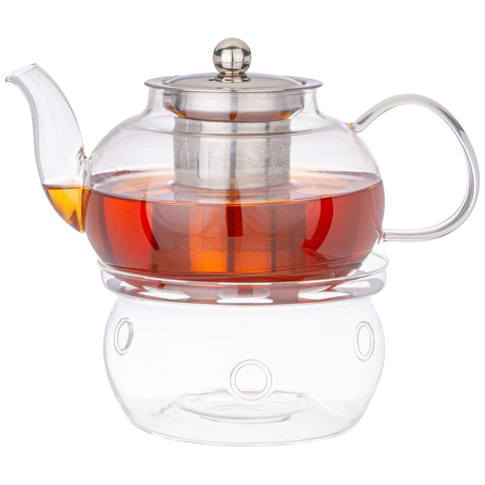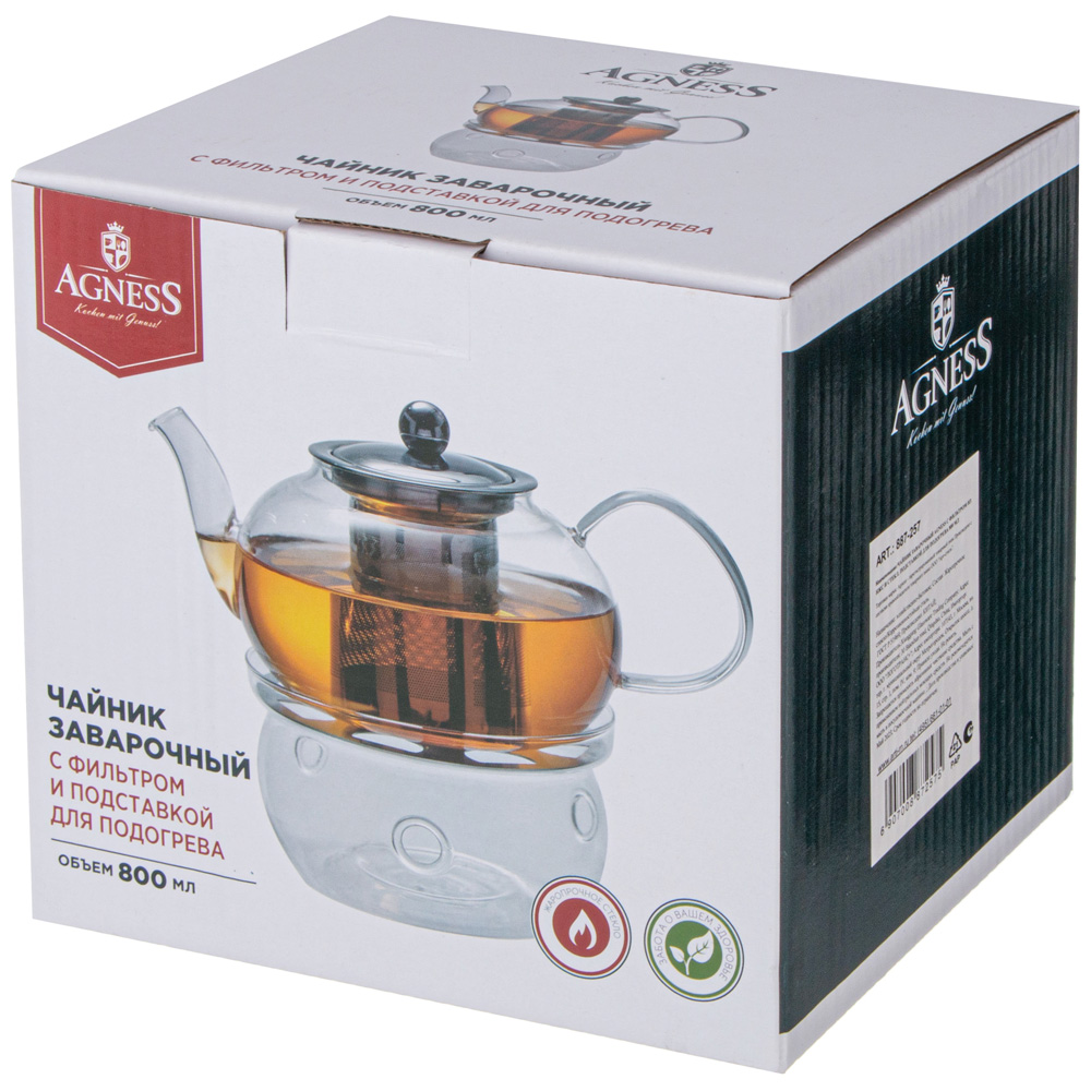 ЧАЙНИК ЗАВАРОЧНЫЙ AGNESS С ФИЛЬТРОМ ИЗ НЖС И СТЕКЛ. ПОДСТАВКОЙ ДЛЯ ПОДОГРЕВА 800 МЛ (КОР=24НАБОР.)