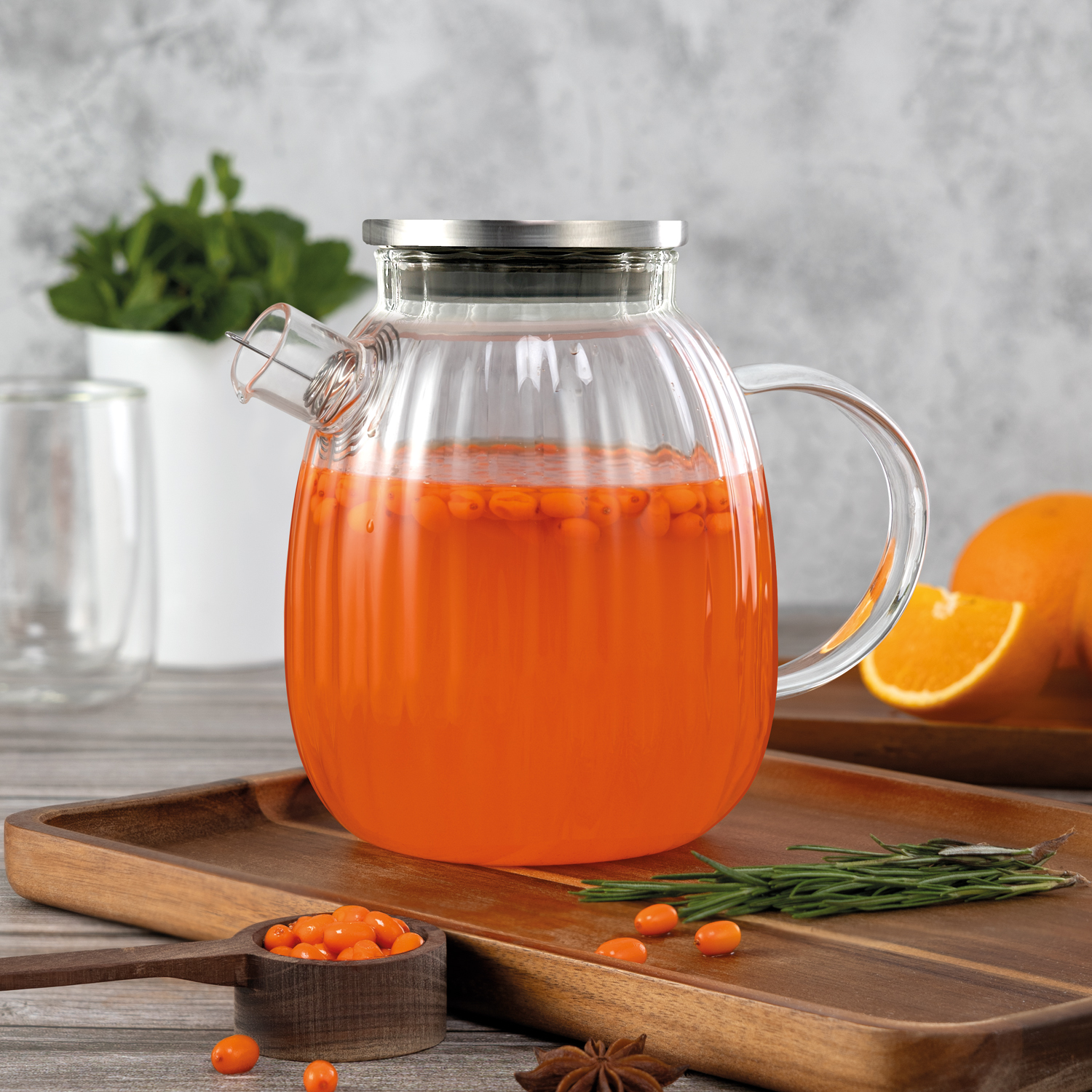 Чайник из термостойкого боросиликатного стекла, которое имеет повышенную термическую стойкость, подходит для горячих и холодных напитков. Идеально прилегающая крышка с силиконовым уплотнителем защищает напиток от потери температуры и имеет встроенный фильтр.