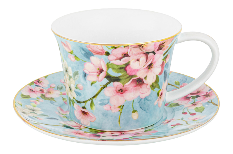 Чайный набор 12 пр. 250 мл 12,5*9,5*7 см "Яблоневый цвет на голубом" NEW BONE CHINA
