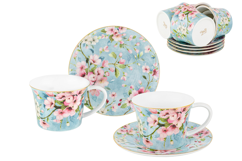 Чайный набор 12 пр. 250 мл 12,5*9,5*7 см "Яблоневый цвет на голубом" NEW BONE CHINA