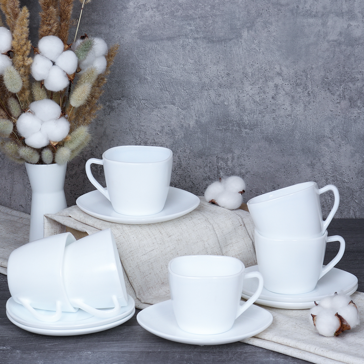 Чайный набор 12 предметов 250 мл белый квадратная форма GRAY-FXB220-12 WHITE (уп 8)