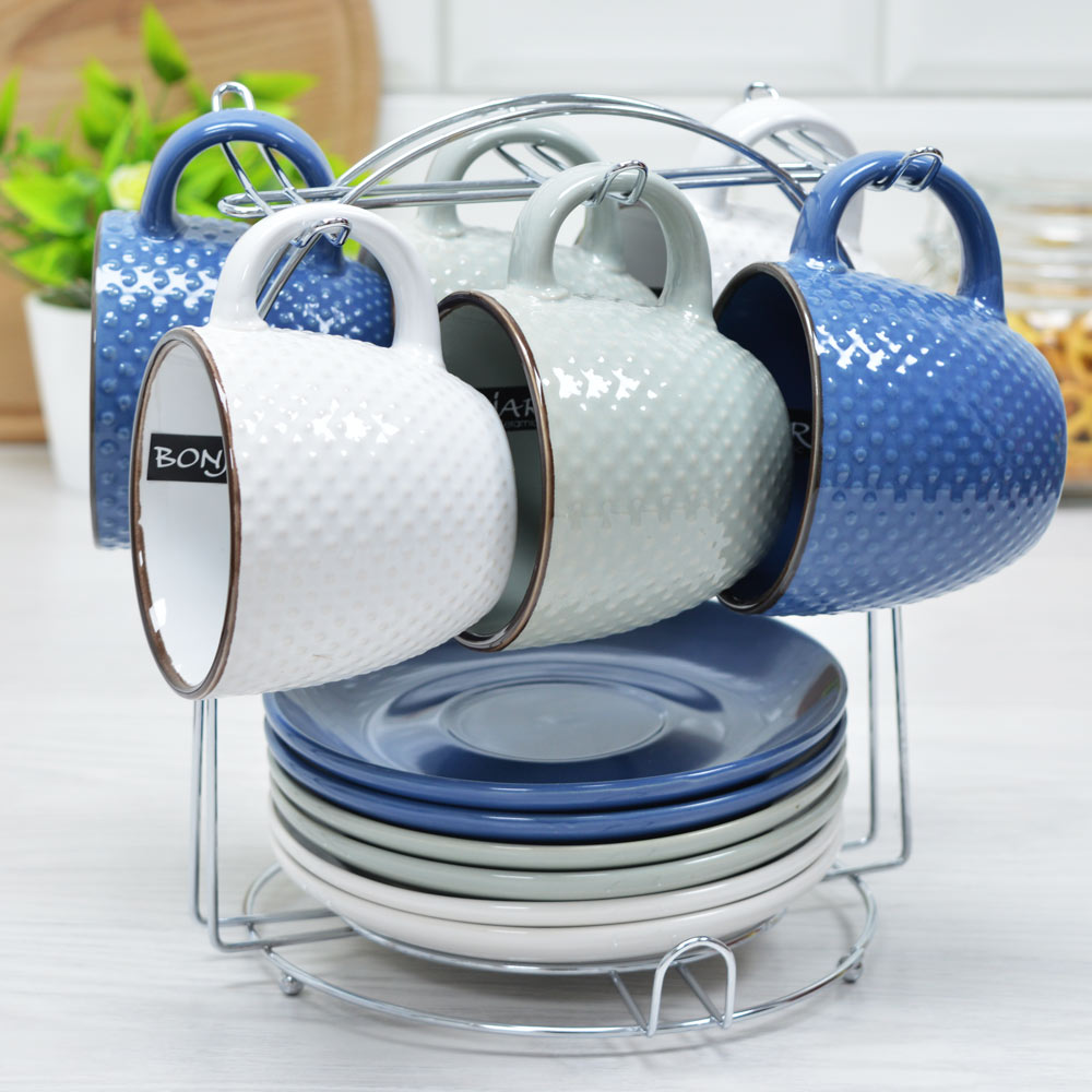 Чайный набор 12 предметов на подставке 911-6MSЧашки и блюдца выполнены из качественной керамики.Классический набор станет украшением стола к приходу гостей.Набор состоит из 6 чашек объемом 150 мл и 6 блюдец.Посуда расположена на металлической подставке для удобства хранения.Заключаем договора по 44 ФЗ, 223 ФЗ