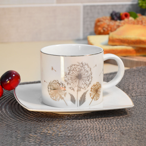 Чайный набор 4 предмета 280мл "Одуванчики" квадрат (00113504)