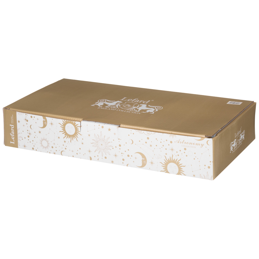 TM LEFARD представляет элегантную коллекцию “Astronomy” из белоснежного упрочненного фарфора. Изящное изображение солнца, мерцающие звезды, созвездия и облака создают атмосферу тепла и уюта, превращая обычное чаепитие в момент вдохновения. Коллекция представлена чайными и кофейными парами, кружками, чайником и сахарницей, блюдом для сладкого. Красочная упаковка, прекрасный подарок для мечтателей и романтиков, любящих все необычное и прекрасное. Посуда прошла сертификацию и подходит для контакта с пищевыми продуктами, легко моется в посудомоечной машине и может использоваться в микроволновой печи.
