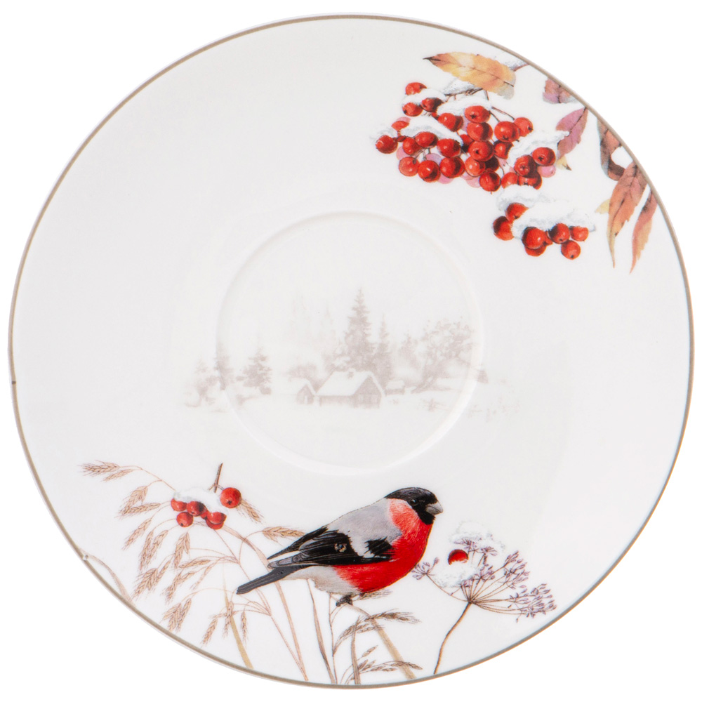 Фото снегирей очень часто украшают различные новогодние открытки, календари, журналы. Дизайнеры ТМ LEFARD разместили этих ярких птиц на белоснежном тонкостенном фарфоре.