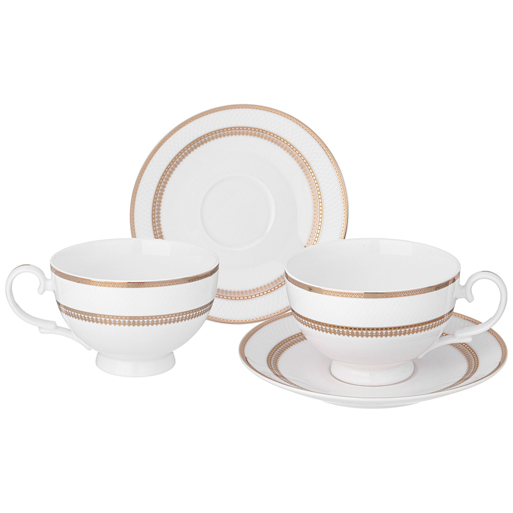 ТМ LEFARD Чайный набор "Праздничный" для торжественных застолий и семейных обедов. Изысканный фарфор Bone Pocelain с эффектом костяного фафора, тонкий и полупрозрачный, прочный и никогда не темнеет. Утонченный кружевной рельефный орнамент выглядит объемным и привлекательным благодаря различной обработке выпуклых и базовых поверхностей. Изящная золотая обводка придает блеск и торжественность. Эта посуда замечательный подарок на юбилей, день рождения, новоселье, который наверняка пригодится каждой семье, запомнится навсегда и прослужит долгие годы. Дизайнеры торговой марки предлагают чайный и обеденный сервизы и наборы тарелок и чайных пар, чтобы сформировать полную сервировку стола предметами коллекции на 6 или 12 персон.