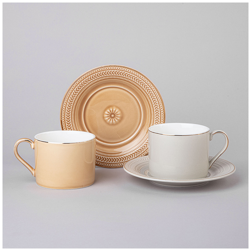 ЧАЙНЫЙ НАБОР LEFARD "TOP STYLE" НА 2 ПЕР. 4 ПР. 250 МЛ БЕЖЕВЫЙ, СВЕТЛО-СЕРЫЙ (КОР=12НАБ.)