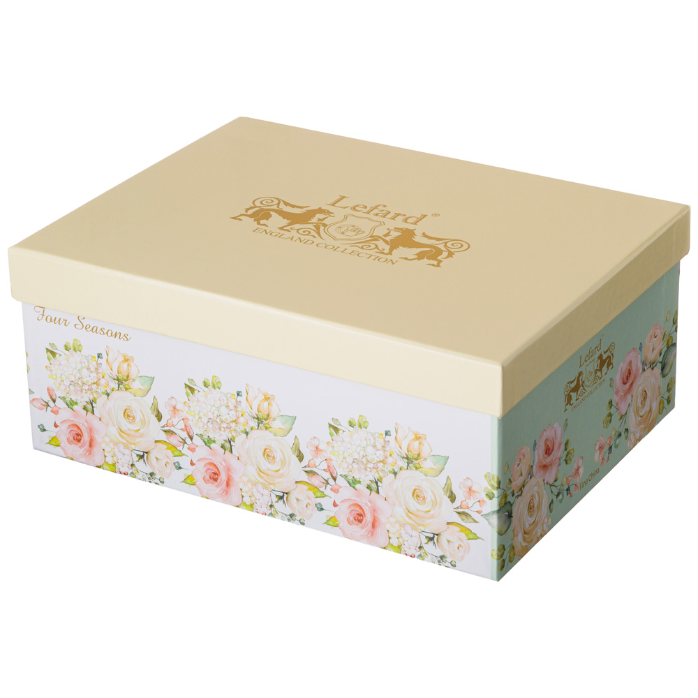 ТМ LEFARD коллекция "Времена года" выполнена из тонкостенного фарфора. Стильная форма, вместительный объем, модное сочетание пастельных тонов и цветочной деколи, отделка золотом - все это делает коллекцию неотразимой и очень привлекательной. Форма и цвет посуды способны оказать магическое действие на всех, кто находится за столом. Светлый зеленый - символ обновления, нежный розовый – период любви и романтики, нежный желтый – время собирать урожай и тепло, прохладный голубой – время собираться с силами. Т.е. «Времена года» могут согреть душу, создать тепло и уют в доме. Это прекрасный подарок. Нельзя ставить в микроволновую печь, не рекомендуется мыть в посудомоечной машине.