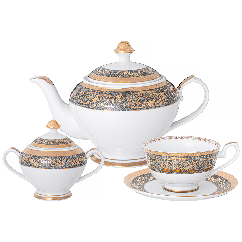 Комплектность: чайник 1300 мл - 1 шт., сахарница 250 мл - 1 шт., чашка 270 мл - 6 шт., блюдце - 6 шт.