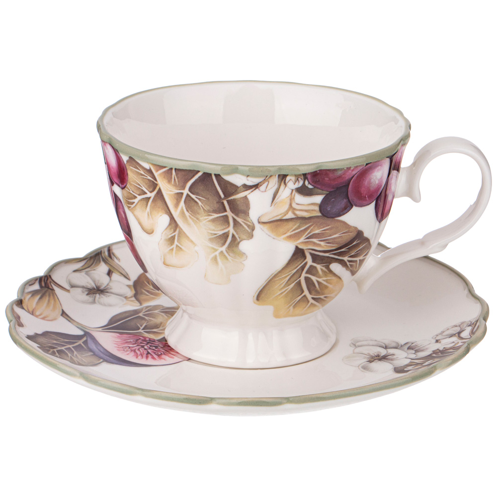 Комплектность: чайник 11,5/22,5см, высота 16,5см, объем 750мл - 1 шт., сахарница 11*11см, высота 12,5см, объем 400мл - 1 шт., чашка 10/12,5 см, высота 7,5 см, объем 270 мл - 6 шт., блюдце 16 см - 6 шт.
