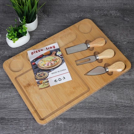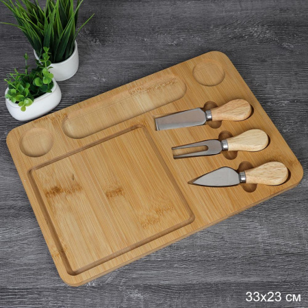 Доска разделочная и нож для сыра 23x33х1,3 см АКЦИЯ / KF-S6 /уп 36/ бамбук 2 ножа и вилка