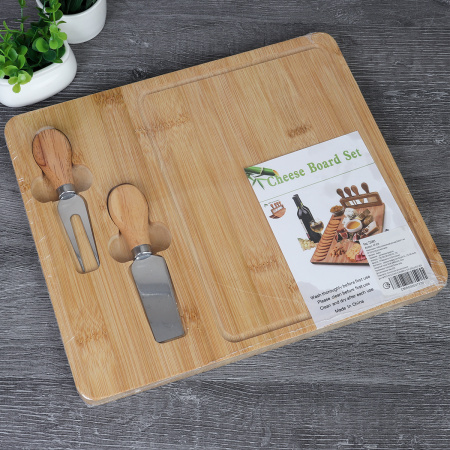 Доска разделочная и нож для сыра 25x30x1.5 см / KF-S10 /уп 24/ бамбук нож и вилка