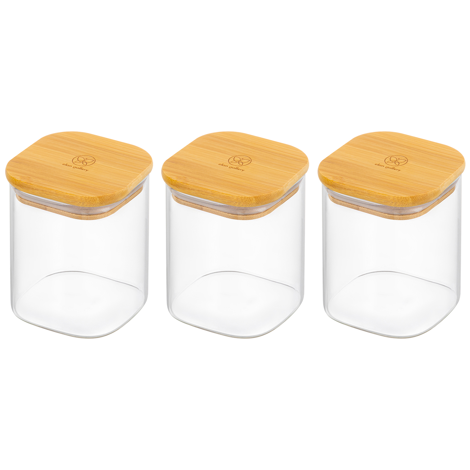 БЫЛО 1014 руб! Набор 3 банок д/хранения 450 мл 8*8*11 см "Crystal glass" + бамбук.крышка с силик. проклад,стекло