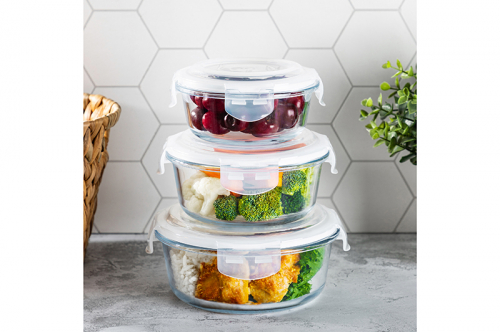 БЫЛО 1024 руб! Набор 3 круглых контейнеров 400 мл, 600 мл, 950 мл с пластик. крышк. с защел., с сил.уплотн