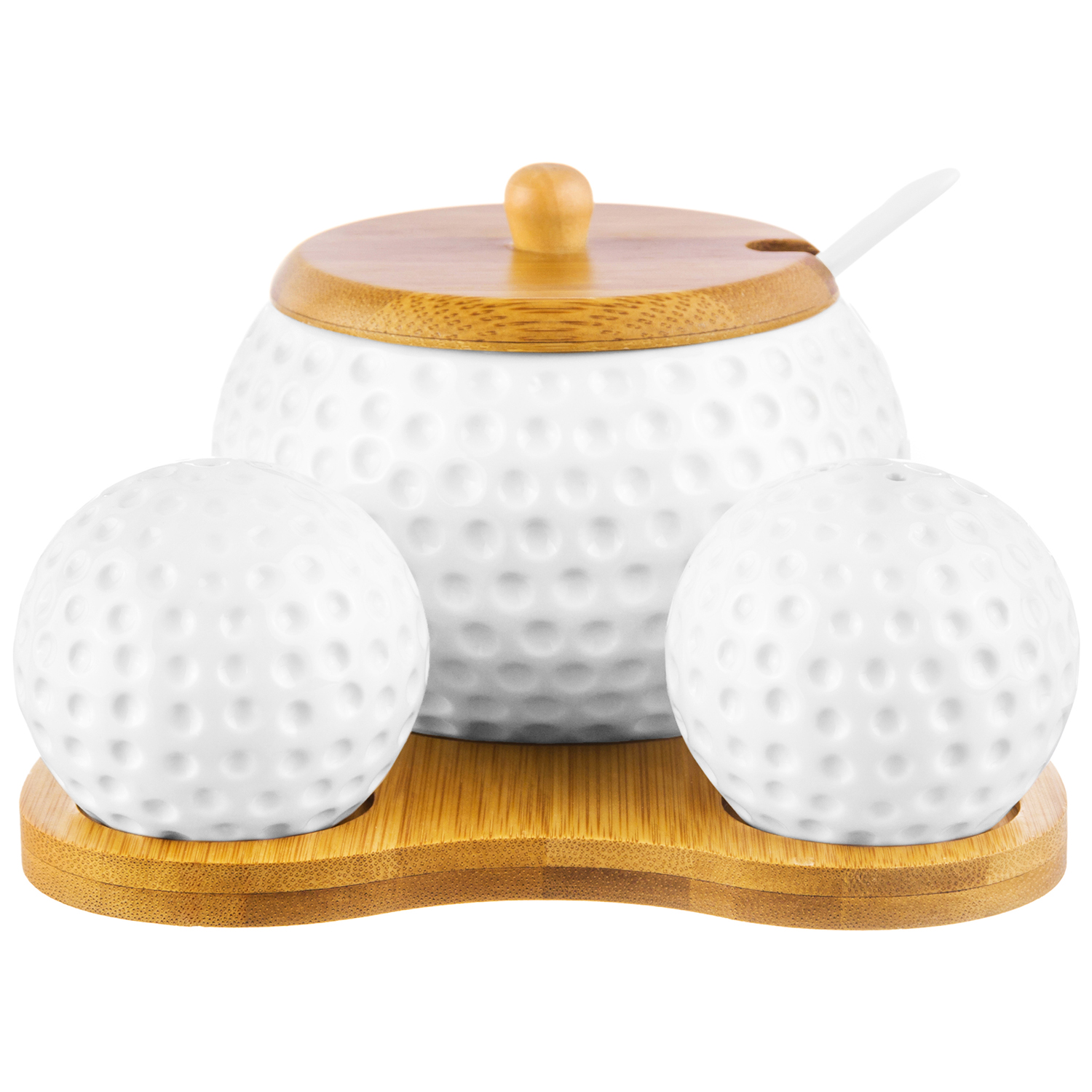 БЫЛО 1028 руб! Набор - сахарница 400 мл 15,5*15,5*9,5 см "Сфера" с ложкой + солонка + перечница на дерев. подставк