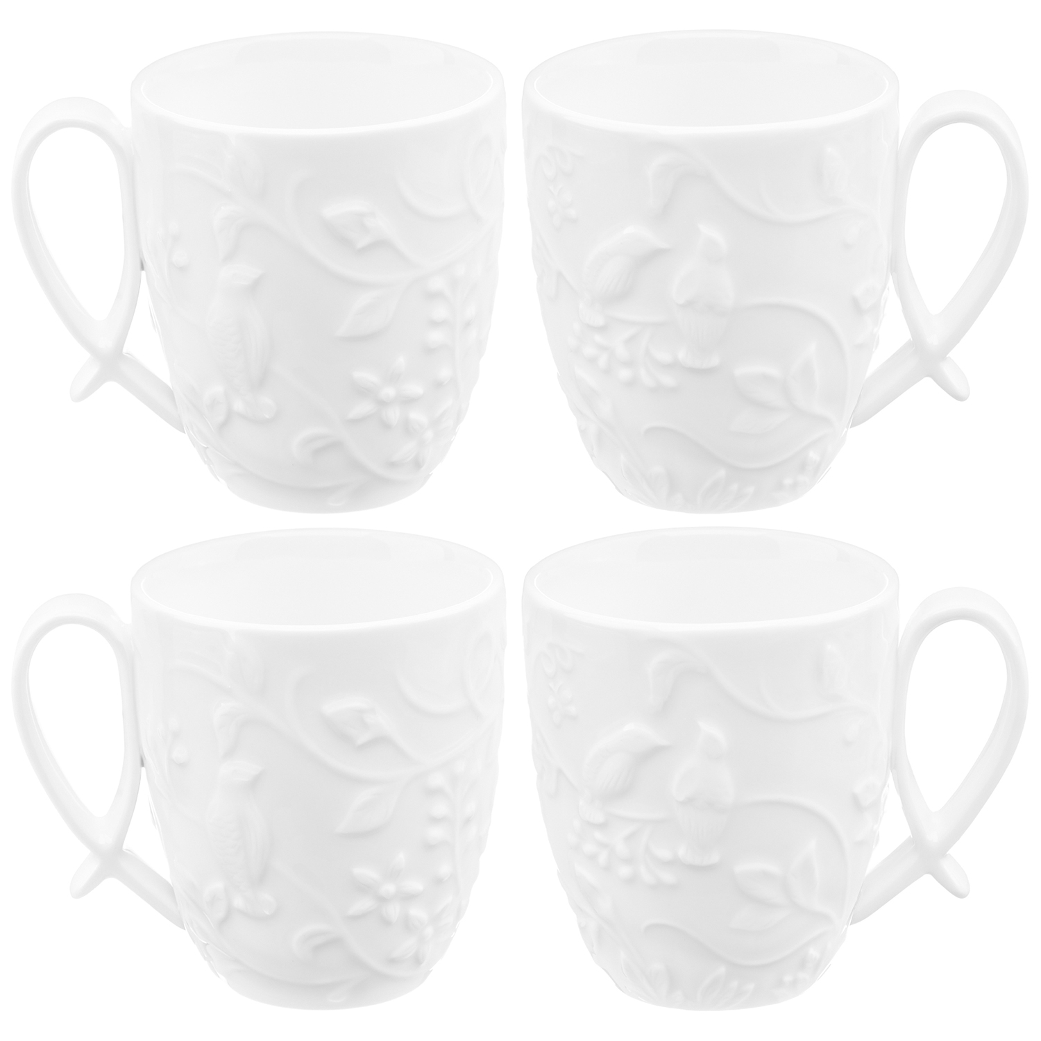 БЫЛО 1080 руб! Набор кружек 4 пр. 300 мл 11*8,3*9,5 см "Птички на ветке"