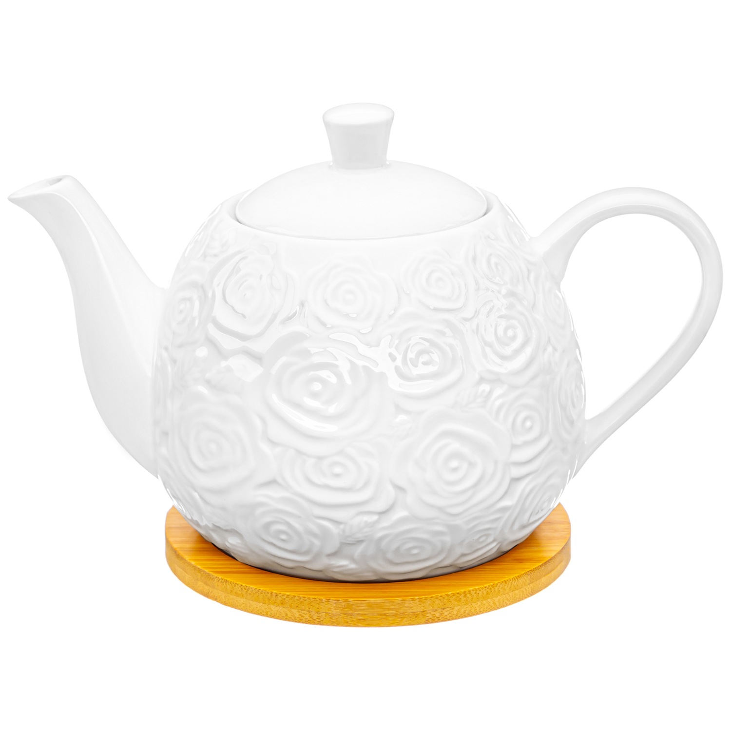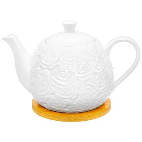 БЫЛО 1105 руб! Чайник 900 мл 21,5*13,5*14,5 см "Розы" на деревянной подставке