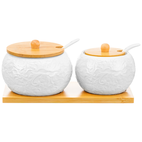 БЫЛО 1105 руб! Набор - сахарница 400 мл 17,5*16*10 см "Цветок" с ложкой + солонка + перечница на дерев.подставке