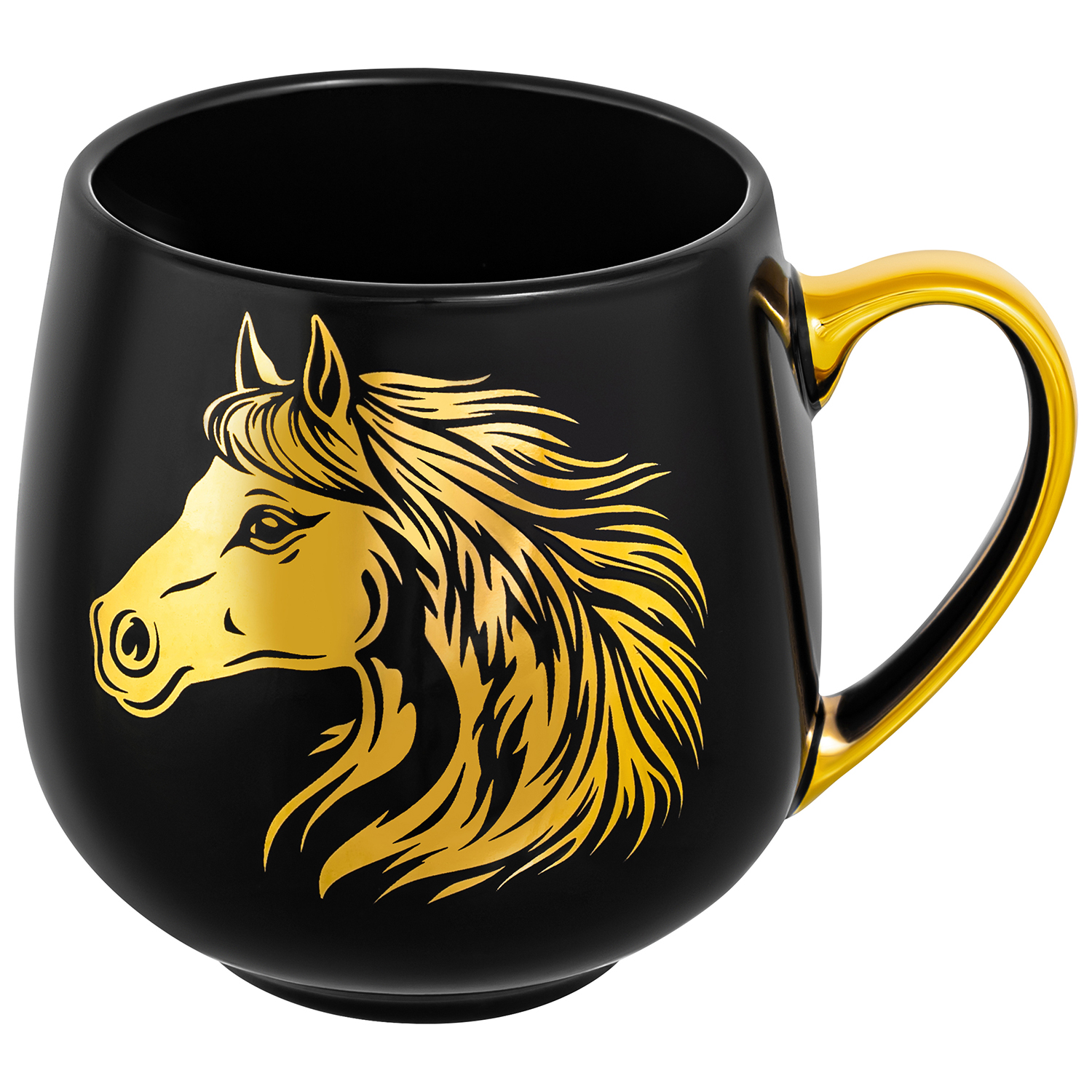 БЫЛО 1117 руб! Кружка 530 мл 13,5*10,5*10,7 см "Лошадь" золотая на черном, фарфор