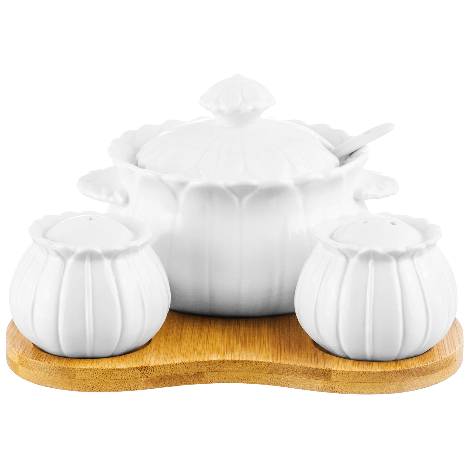 БЫЛО 1154 руб! Набор - сахарница 400 мл 17,5*16*10 см "Цветок" с ложкой + солонка + перечница на дерев.подставке