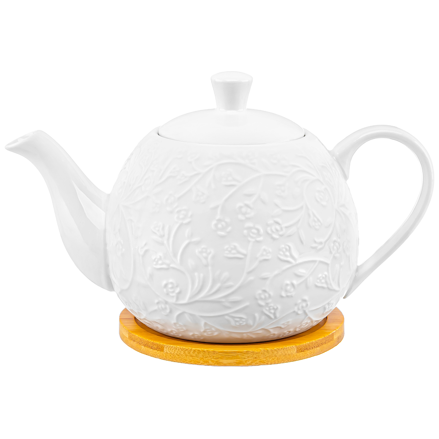 БЫЛО 1198 руб! Чайник 900 мл 22,5*13*14 см "Веточки-цветочки" на деревянной подставке
